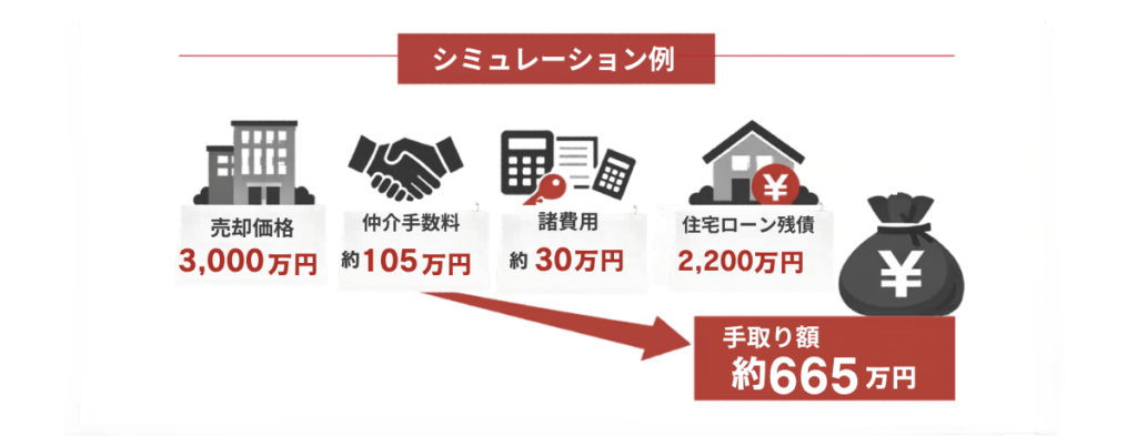売却価格が3,000万円のケースで、手元にどの程度残るのかをシミュレーションします。