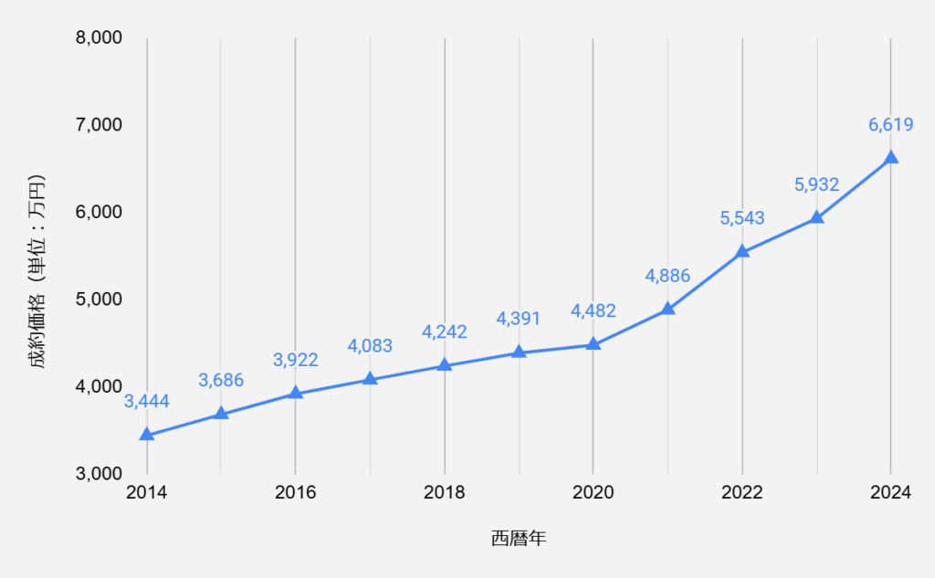 しかし、新築マンションの価格が高くなりすぎたことで、中古マンションが注目されるようになりました。特に築10年前後の物件は築浅と見なされるため人気が高く、成約価格は年々上昇しています。