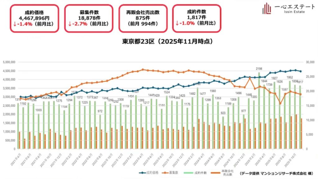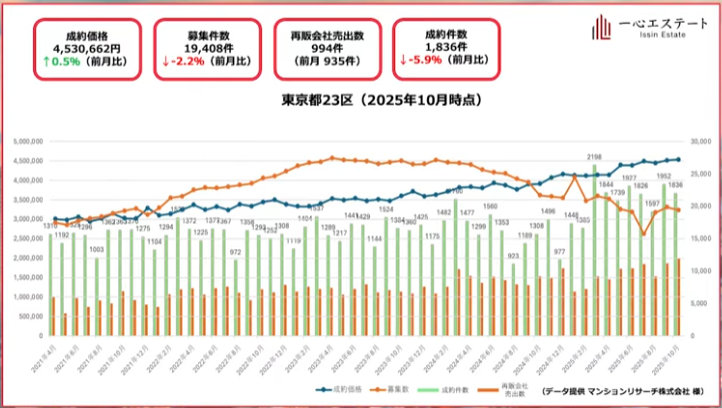 12月・1月は季節要因で数字が縮む可能性があるが、2026年〜27年にかけての相場は依然として明るいと予測しています。現在は価格が右肩上がりだった時期に比べて物件を選びやすいため、「住み替えを検討している人にとってはチャンス」です。